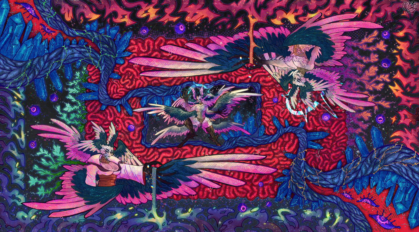 I enjoy drawing monsters, bodyhorror, and using highcontrast colors!