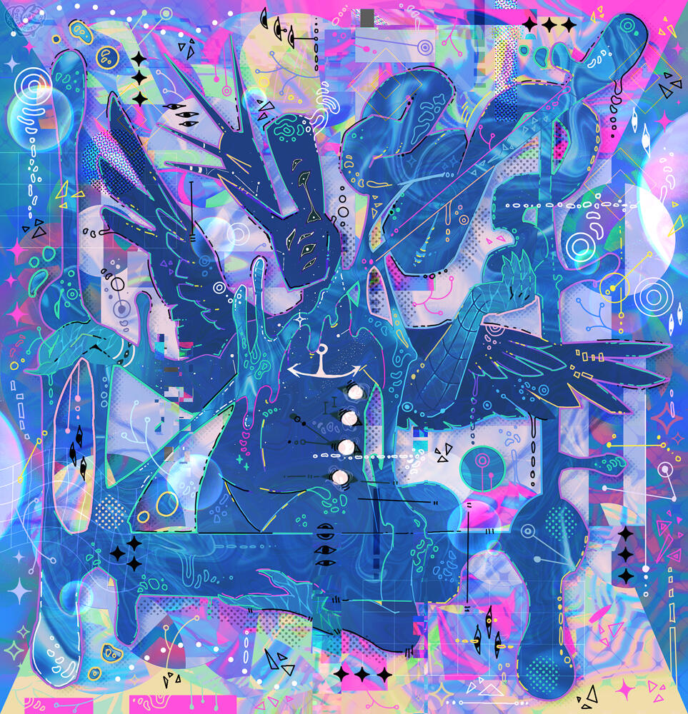 ▵ An experimental illusrtation. Tell me a bit about your character or a theme, and I'll go nuts on painting about that!